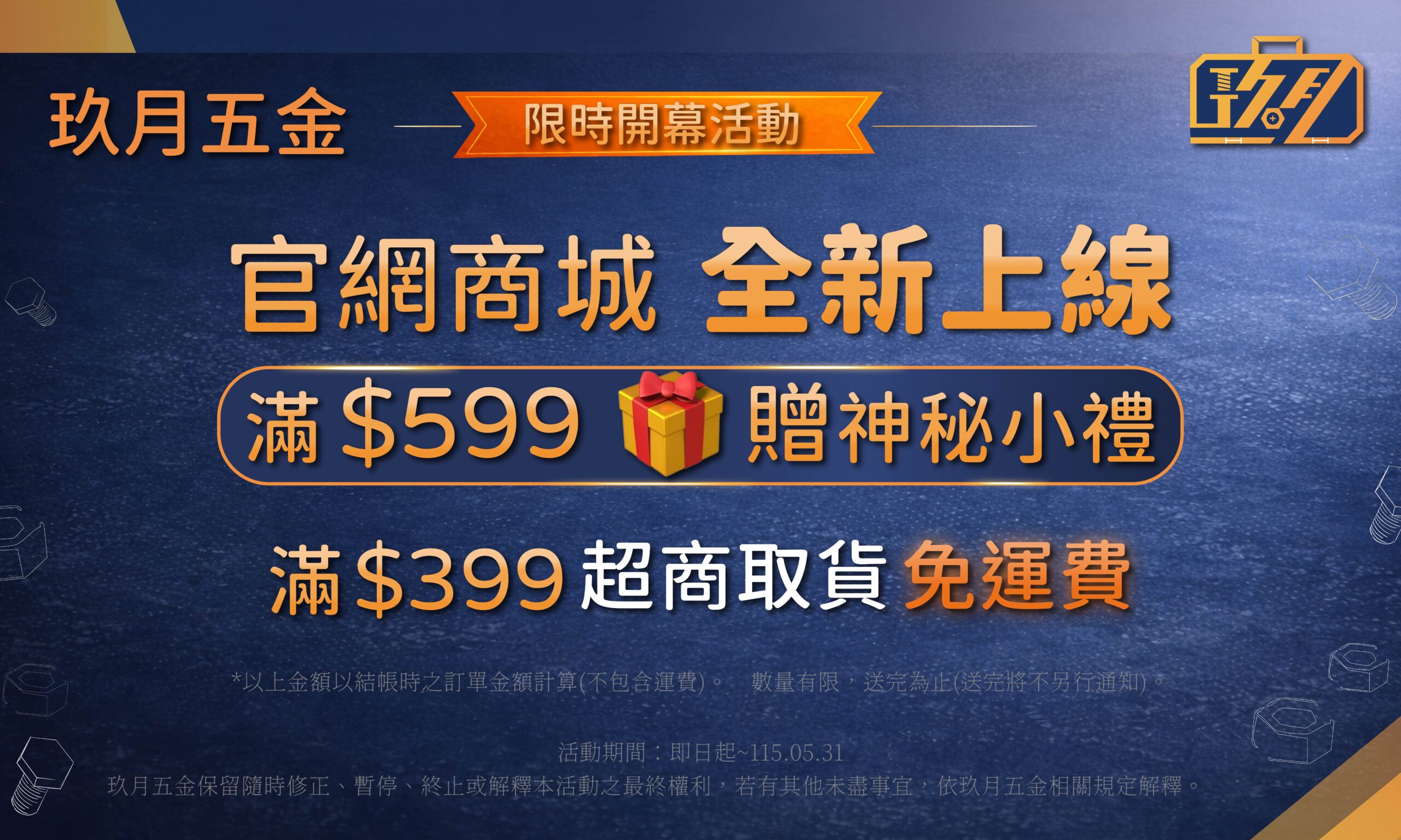 玖月五金雖然是一個新興的品牌,但卻擁有經營多年實體店面的經驗,從一間約15坪的店面起家,原先以民生需求的水電五金為主,後來因為市場需求,我們陸續增加產品類別,包含各式機械五金、吊重五金、油壓工具、交通器材、氣動/電動工具、手工具等,品項非常多元。